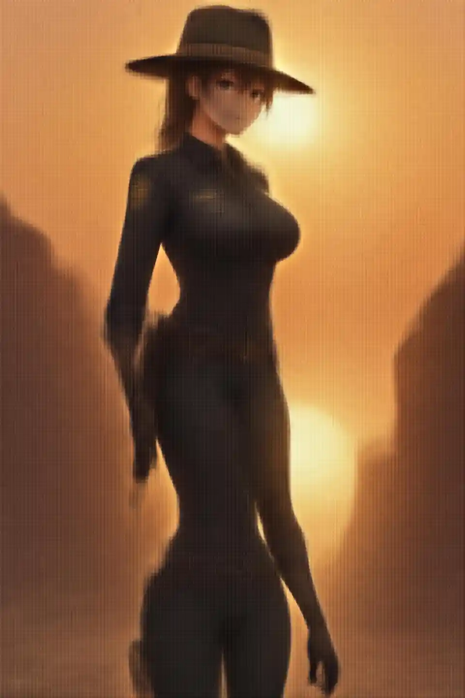haruka, kifua imara, Ultra- kina 8K CG picha ya jangwa magharibi wakati wa jua kuonyesha sheria sare na uvutano cowboy. nje