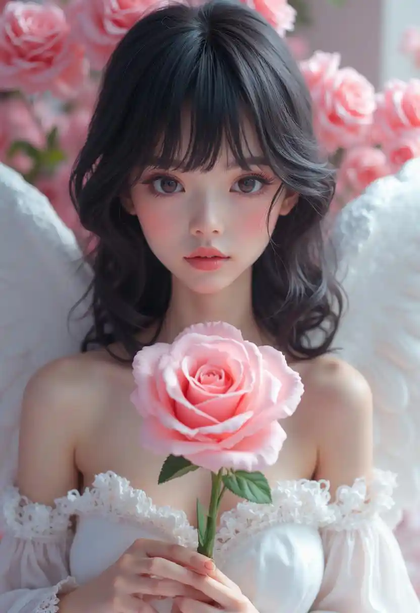 Haruna mwenye nywele nyeusi na Mabawa ya Malaika na Rose