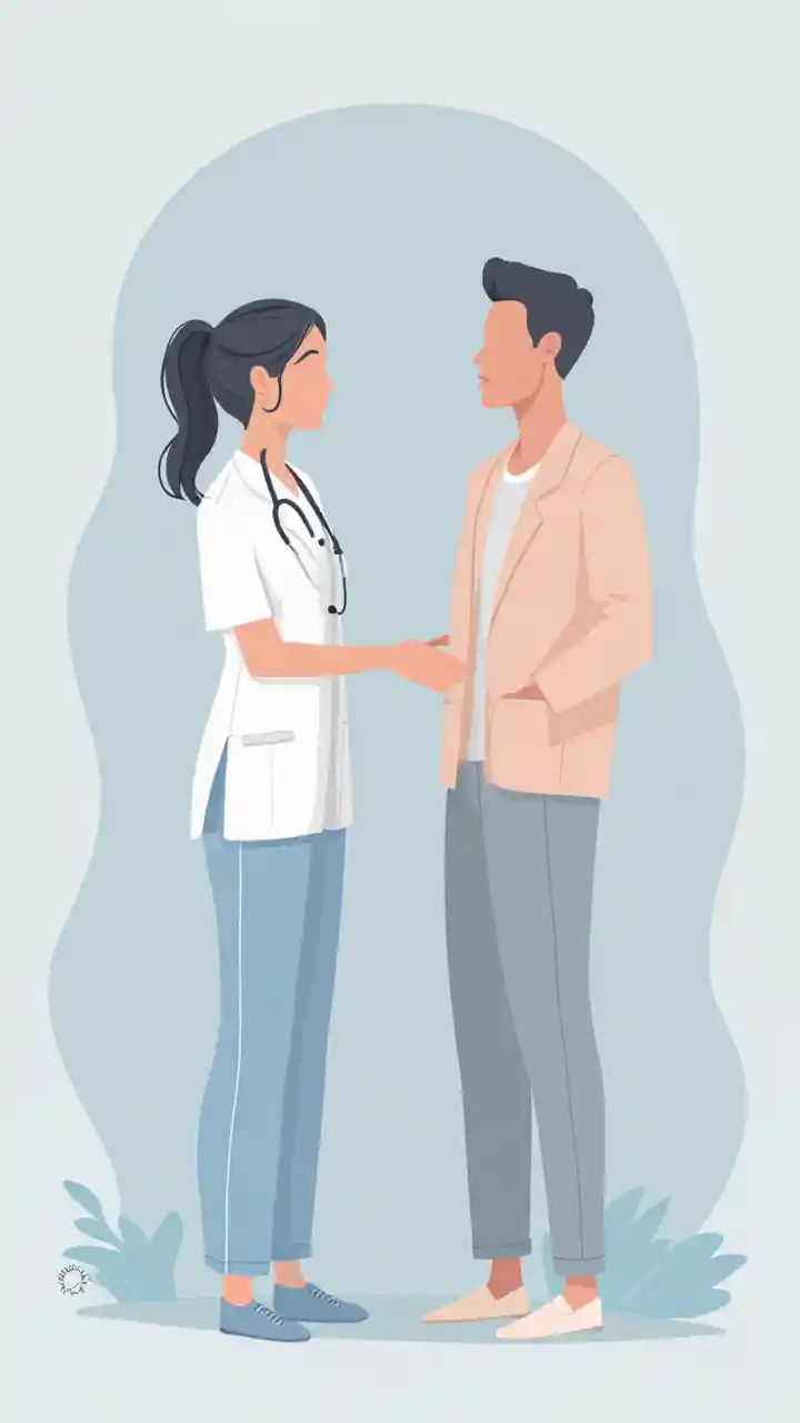 Picha ya gorofa ya wafanyakazi wawili wa afya wa Ulaya, nusu ya mwili, na sauti laini na maelezo ya chini, vivuli, kuamsha kazi ya pamoja na