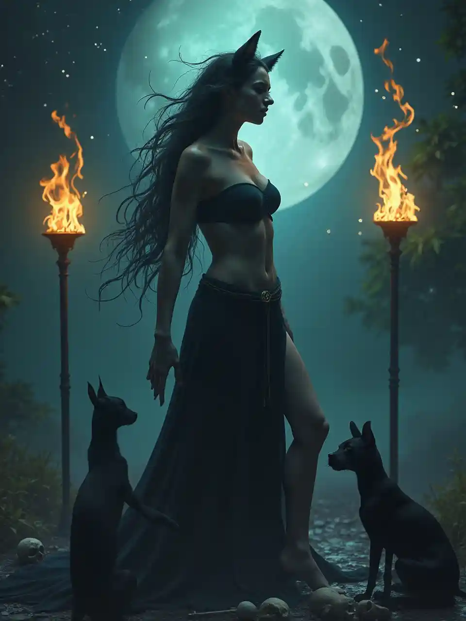 Mgeuko wa Kimuujiza wa Mungu Hecate Chini ya Anga Lililoangazwa na Mwezi