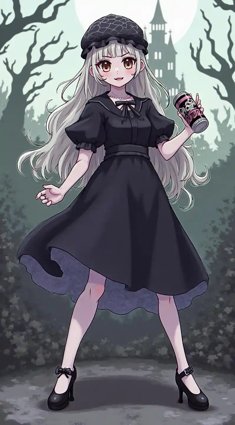 1msichana, kike lengo, msichana, Hella Mungu wa Jahannamu, mavazi Gothic, netfish cleave, viatu vya juu, ngozi ya rangi, soda na alama, kaburi na Gothic ngome