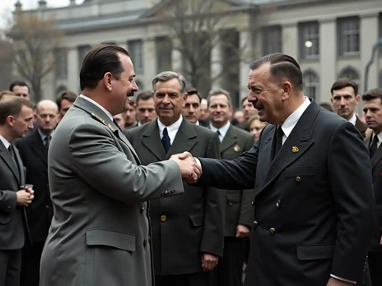 Hindenburg anampa Adolf Hitler mkono rasmi kisha anageuka kwa umati na mikono yao