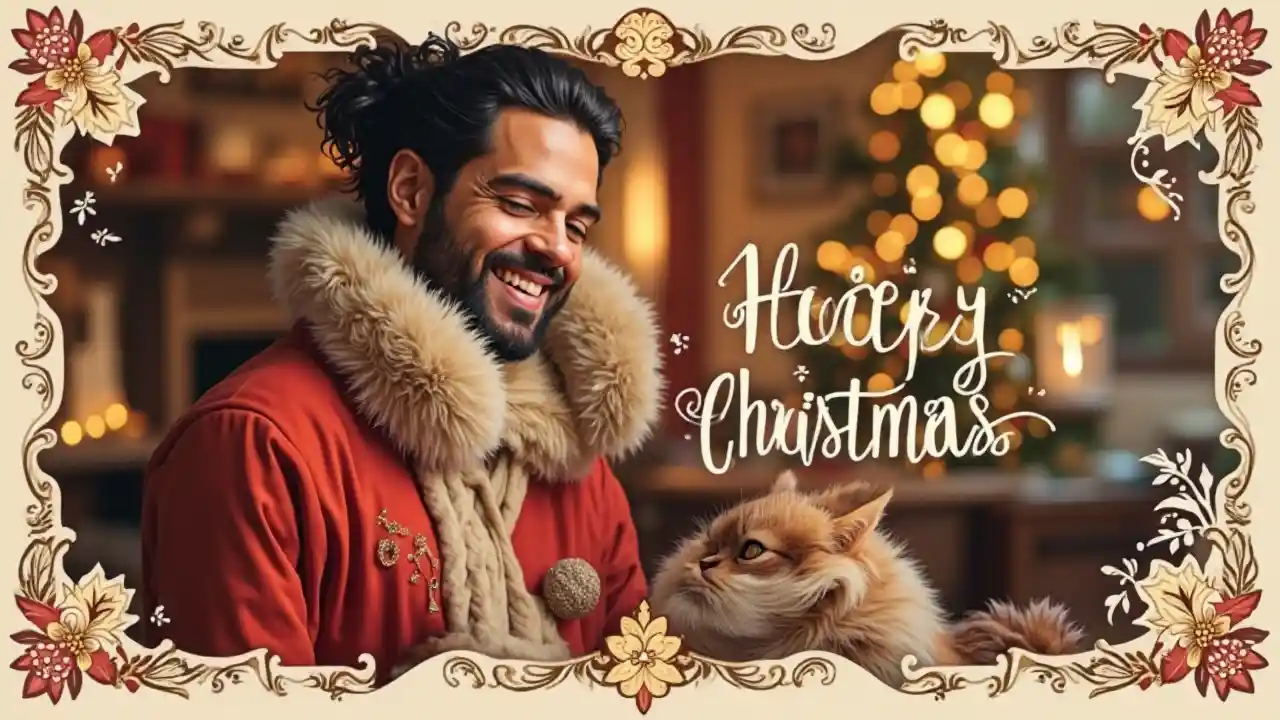 (Krismasi kadi kubuni), akishirikiana (classic) aesthetic, rangi ya joto, na vipengele sherehe, furaha yako katika picha, fonts kifahari kuwasilisha likizo ujumbe, mipaka mapambo, mapambo nyeti, starehe na kukaribisha mazingira, high quality print, yanafaa kwa sherehe, desturi likizo, uwiano.