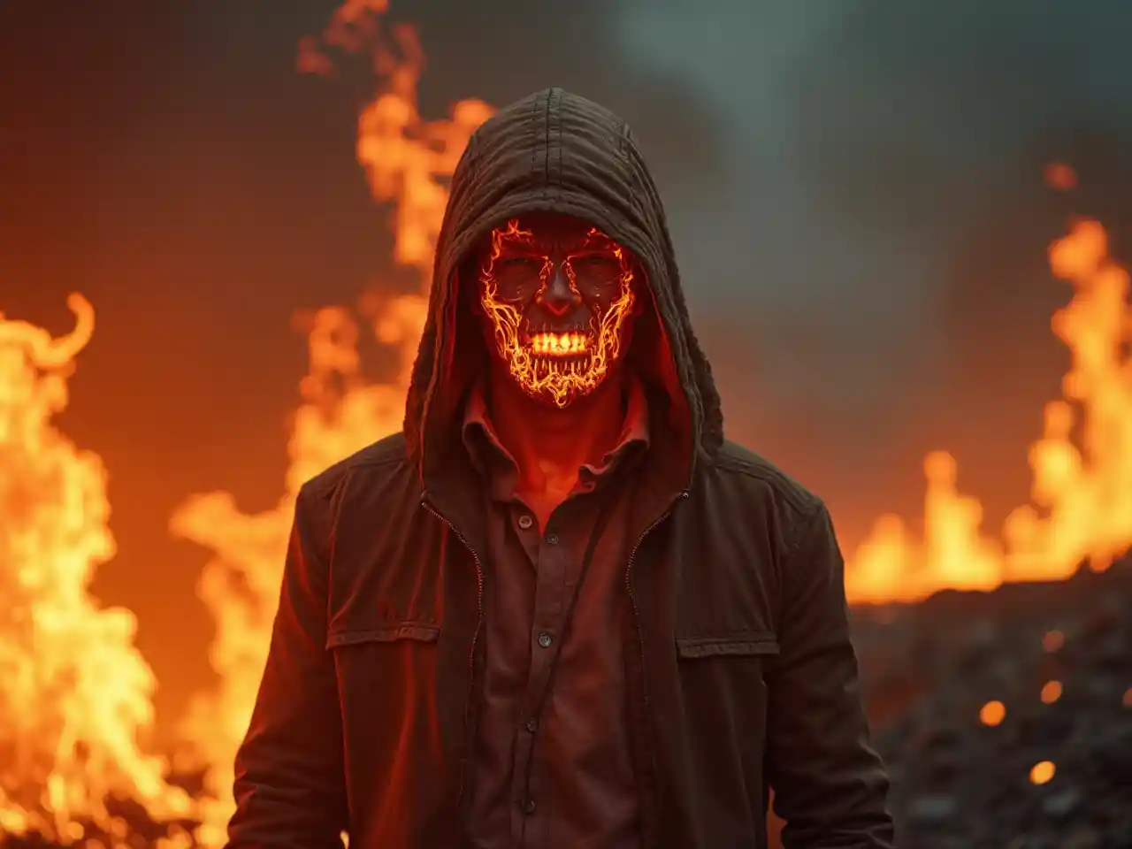 Ufunuo wa Moto Uliofunikwa kwa Kofia Katika Mandhari Yenye Kutia Kicho