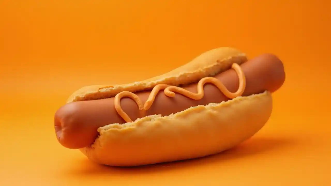 Gisellehot dog, rangi ya joto, background ya rangi ya machungwa