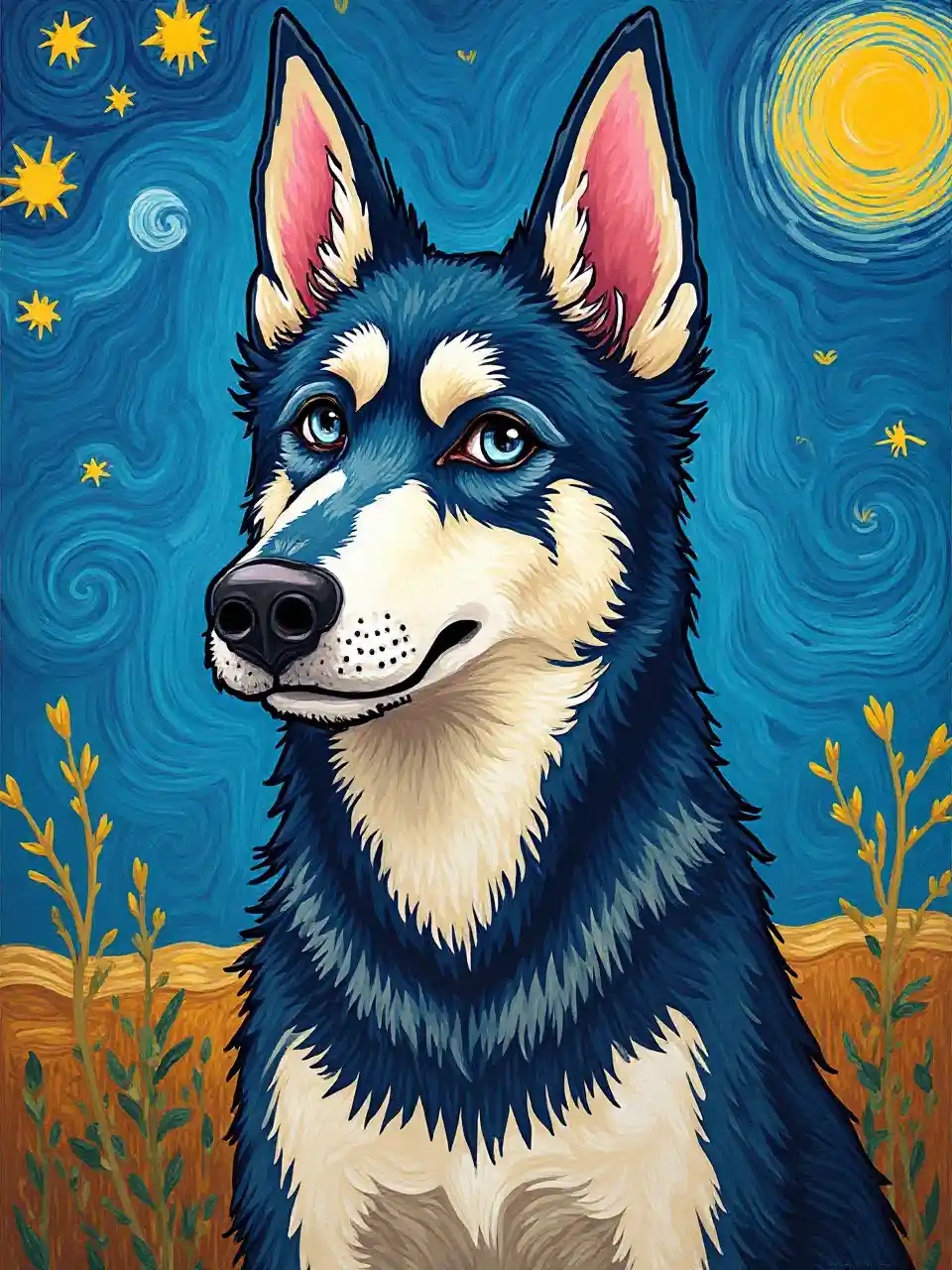 Husky Katika Mtindo wa Sanaa wa Van Gogh