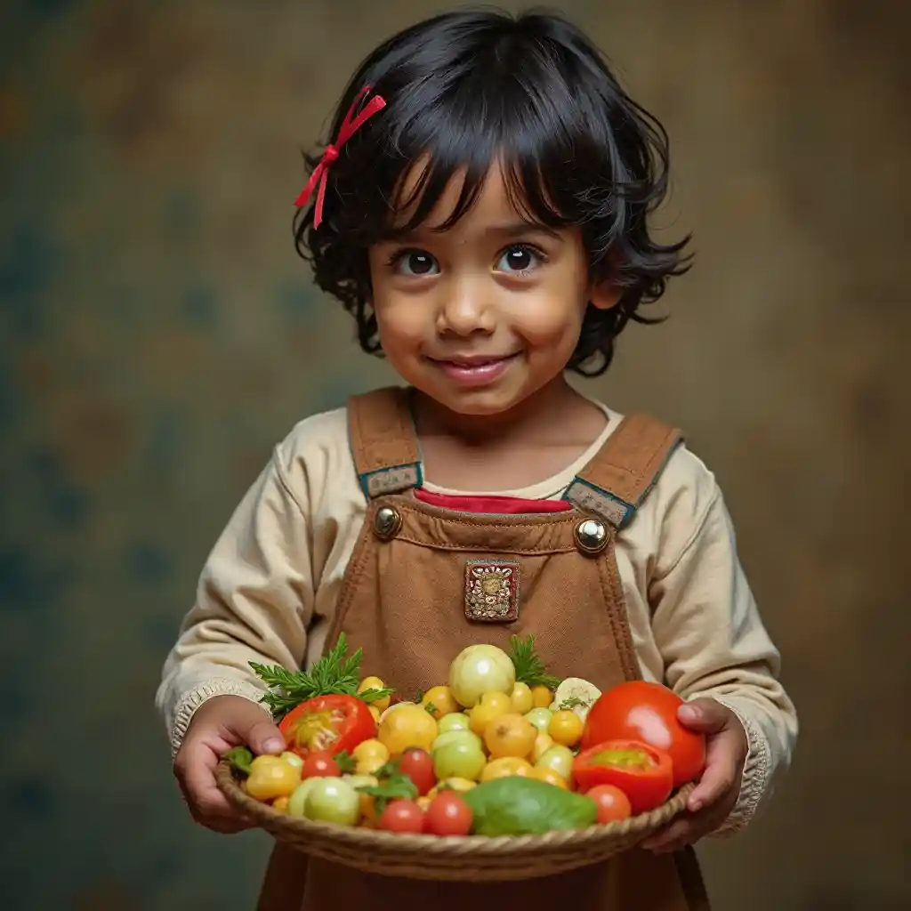 Mtoto wa Kihindi Akiwa na Mboga Mpya