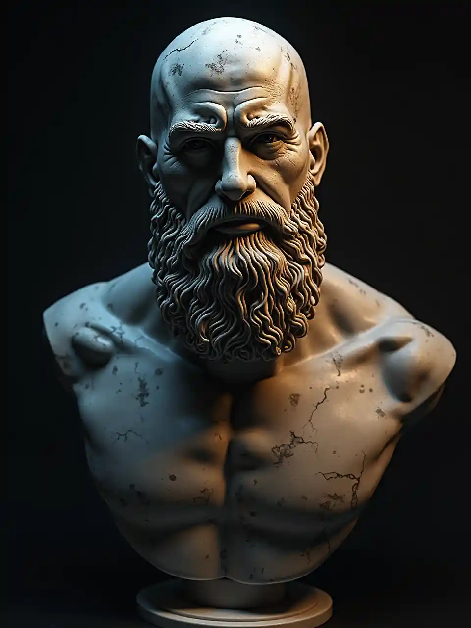 JamesIronman bust, na ndevu kubwa, katika marumaru sanamu style, taa ya ajabu