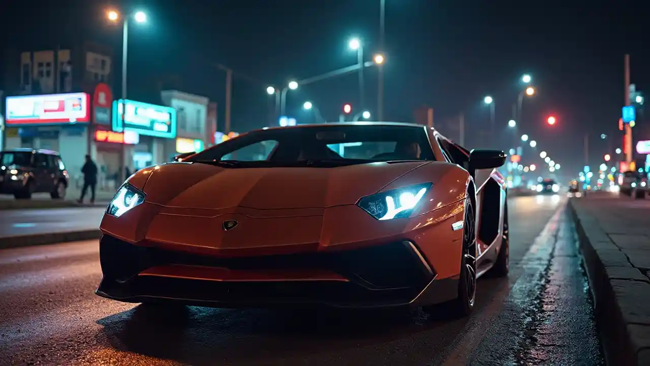 Taa za Usiku za Jiji la Kabul kwenye Gari la Lamborghini