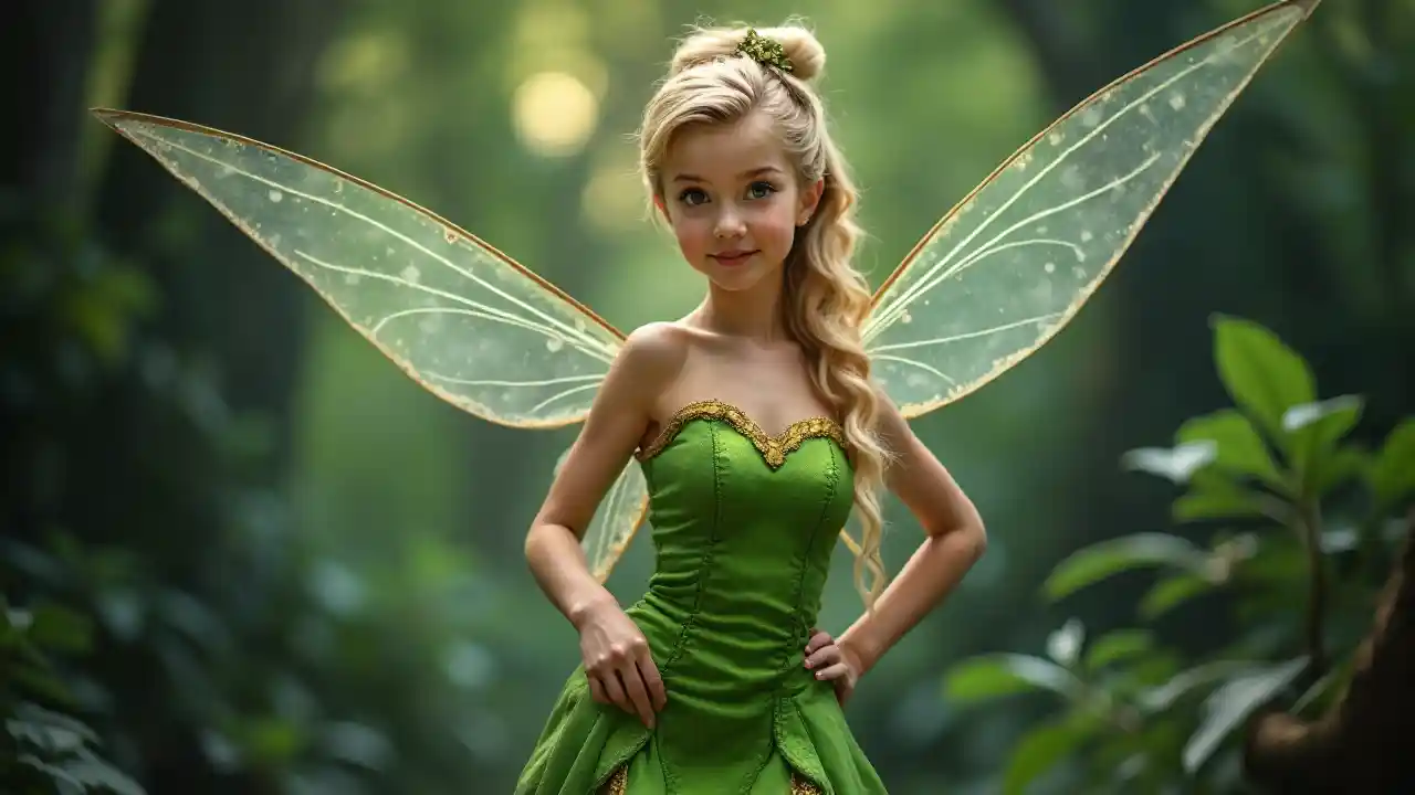 Katrina Bowden cosplaying kama Tinkerbell, picha ya mwili