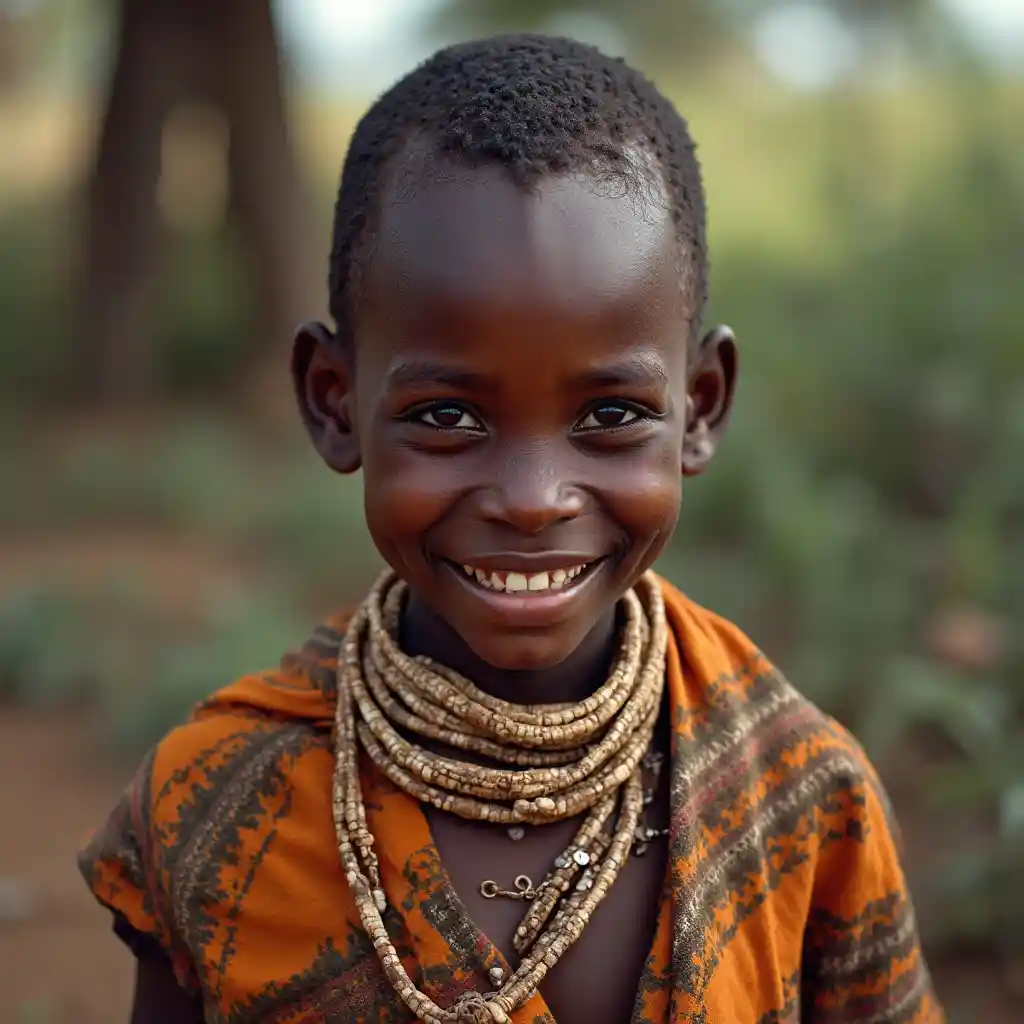 Mtoto wa kabila la Kenya mwenye furaha saa 9 asubuhi