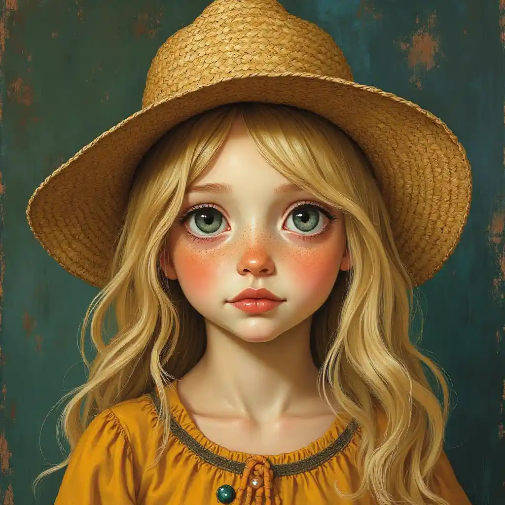 Gustav Klimt mtindo blonde msichana, mtoto mfano, freckles, maskini, nini