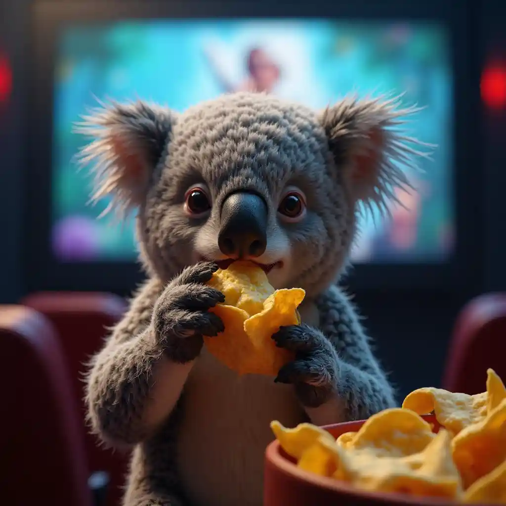 Mtoto Mzuri wa Koala Afurahia Chip za Nacho Kwenye Sinema