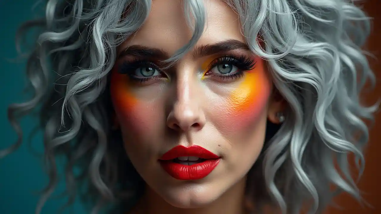 SamuelLady Gaga mwimbaji 70years umri na mkali dramatic make-up na nywele pori nzuri na texture ngozi, kina picha ya juu, nywele kiji, Dior make-up, kushinda mtindo picha ya uhariri