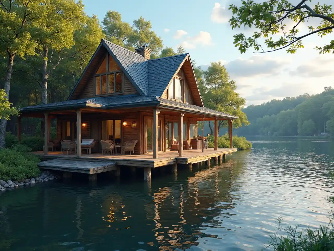 Nyumba ya pembeni ya ziwa yenye balcony na oro mbili