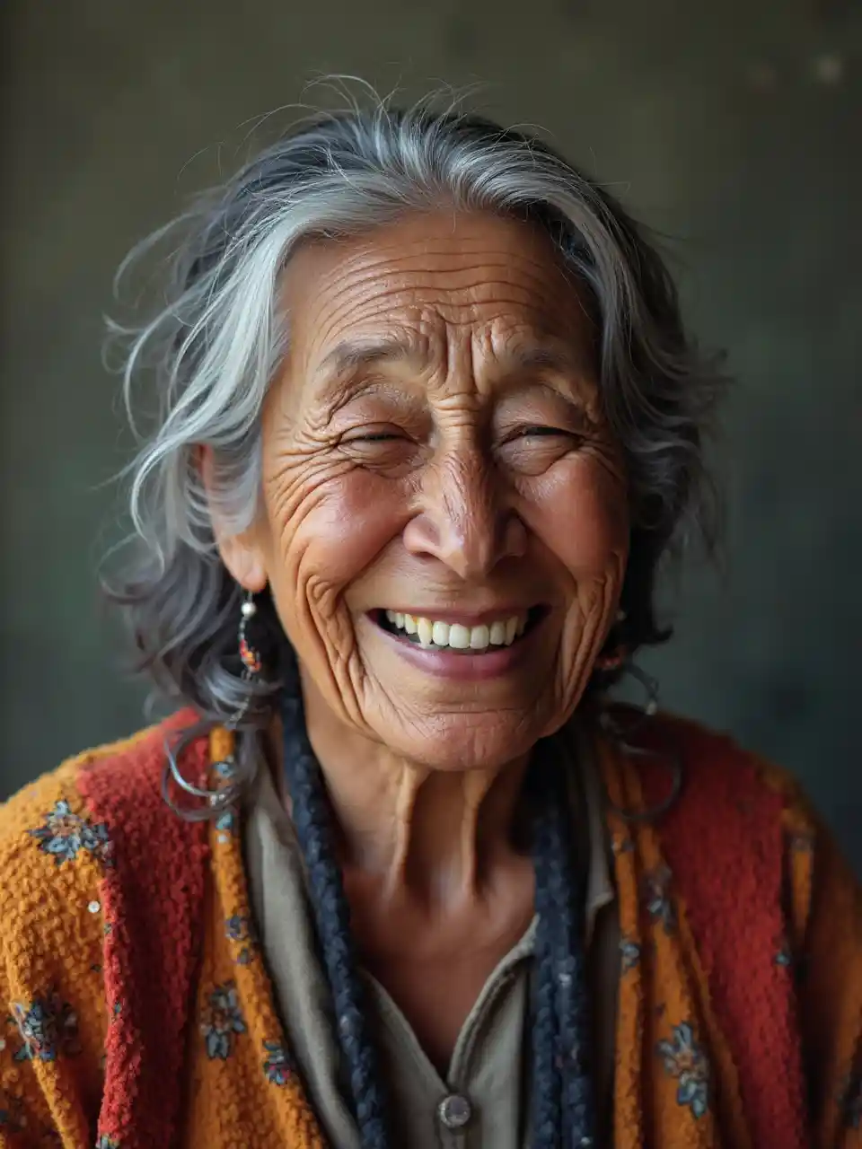 Mzee wa Lakota Mwenye Nywele Nyeusi Anayecheka