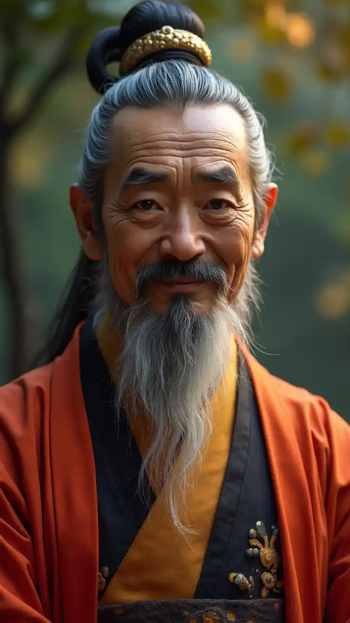 Picha ya Lao Tzu, rangi mkali na wenye kujishibisha, kifahari, kina sana, mtindo, gazeti la mitindo, umakini mkali, taa ya ajabu, kina cha uwanja, kina cha ajabu, asili ya kufifia