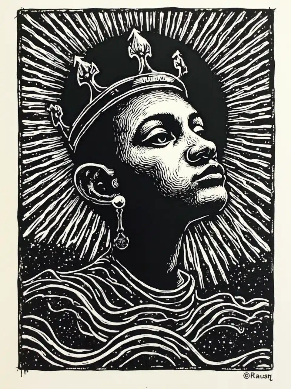 Nyeusi Nyeupe Linocut Sun King Stamp