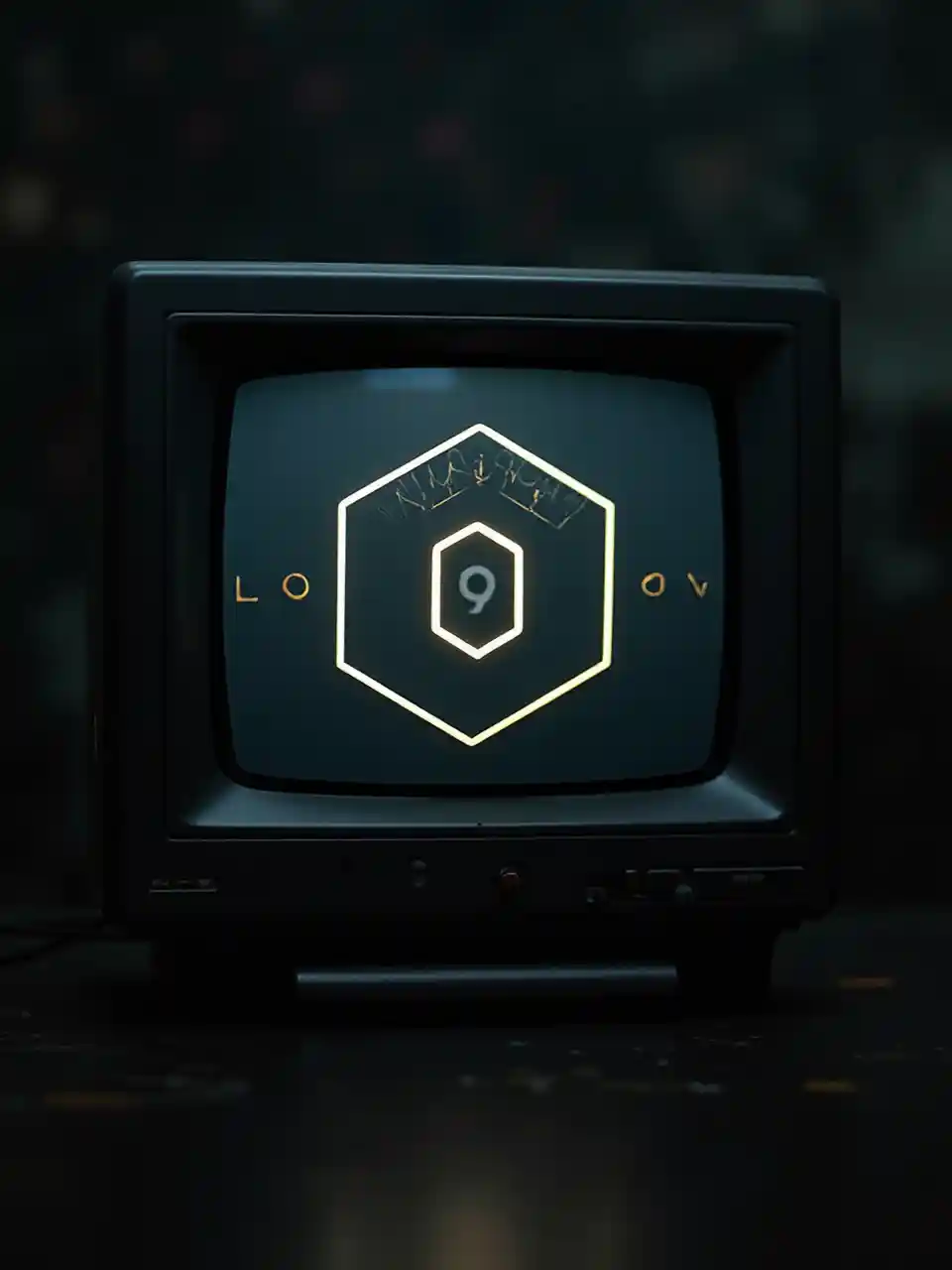 Vintage kompyuta kiwambo kubuni, umbo la hexagon, mlango wa kati na kubuni sanduku, screen nyeusi, taa ya ajabu, mistari wazi, maandishi overlayed "LOST DOOR" katika bold, mood, kina sana, safi aesthetic, kuvutia visual, athari graphic utungaji, evokes udadisi na intrigue.