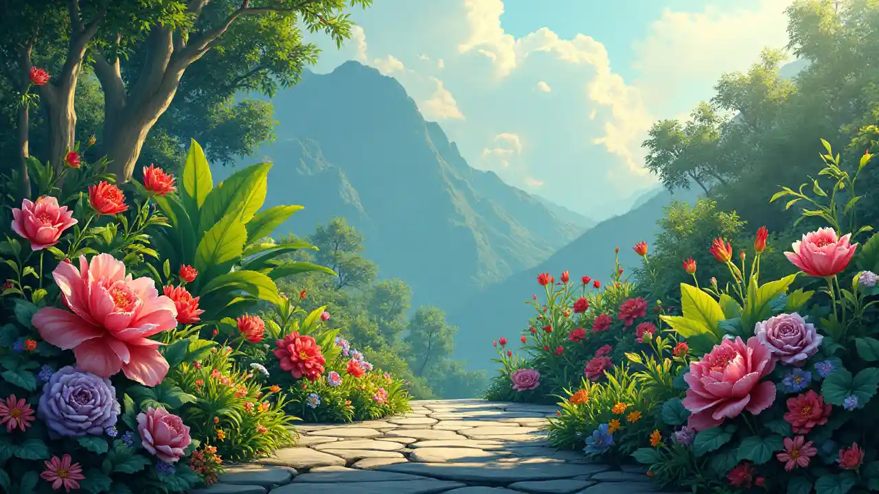 mimea na maua ya kijani, ubora wa juu, rangi mkali, kina sana