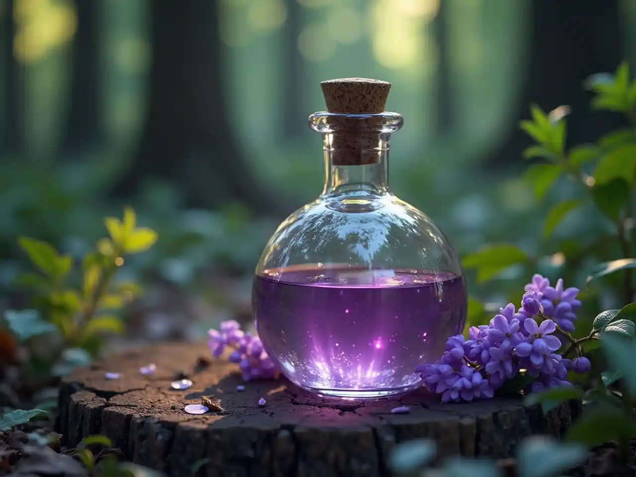 kioo kichawi cha lilac na potion, potion ambayo inatoa afya, mchezo, karibu na msitu wa kichawi