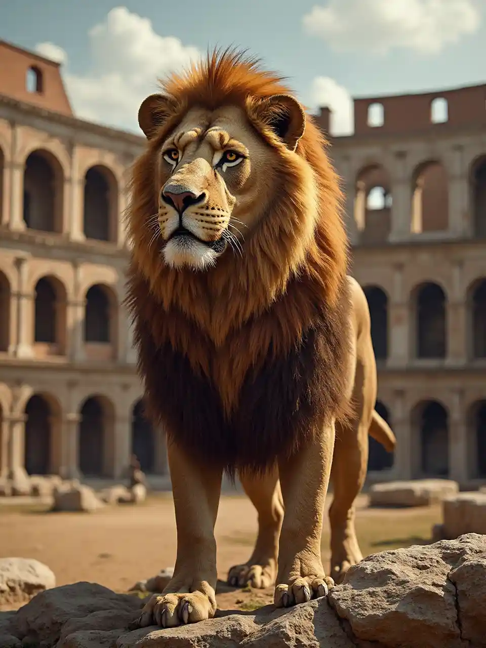 Robin(simba mkuu), nyuma ya Colosseum ya kale ya Roma,
