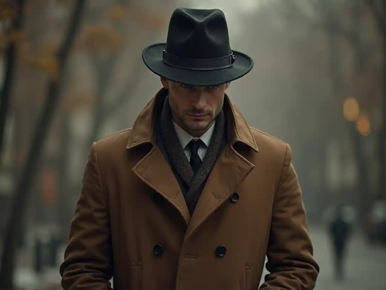 Karatasi ya tabia kwa ajili ya Mwanamume Upelelezi katika Brown Coat na Black Hat