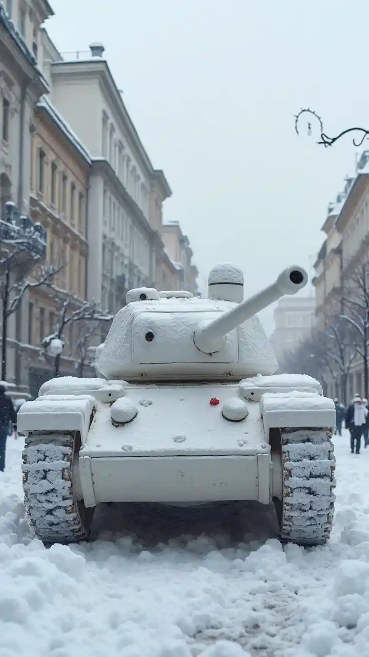 Tangi la kivita lililotengenezwa kwa marshmallow katika jiji la Moscow