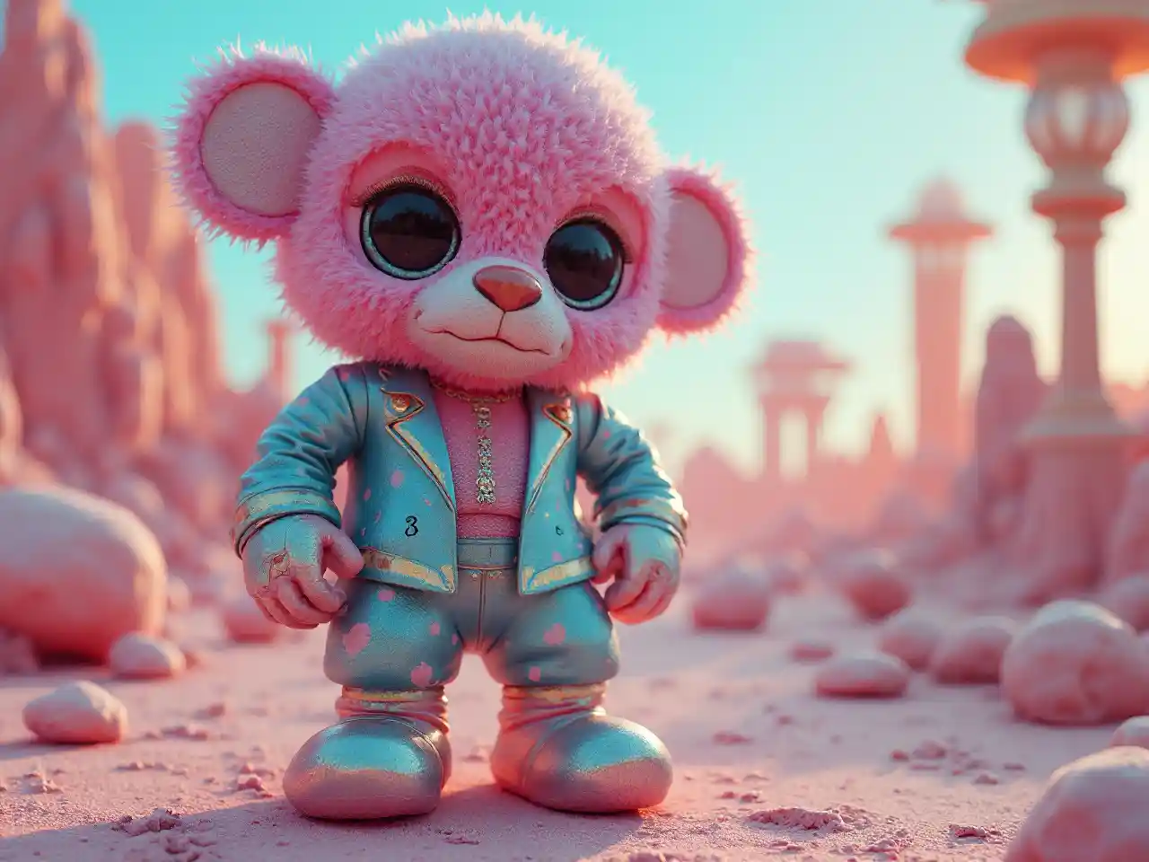 Gucci-aliongoza tabia katika mji mkuu wa Mars, kuchanganya uhalisia ajabu na rangi katika kubuni yao. Vipengele vya upigaji picha wa infrared na mbinu za luminogram huonyesha mambo ya ajabu, huku miundo ya mokume inaongeza kina. Kuingiza vifaa viwili vya fluffy na foil, tabia ina sura ya furry ambayo inakumbusha mifumo ya girih. Aesthetics inaunganisha ubora wa kuyeyuka na tinsel, iliyoelezwa na rangi ya tourmaline na spinel. Kupiga mtazamo kama vile 24mm na 100mm kuonyesha eneo katika 8k uwazi na mwanga wa ndoto. Kwa kutegemea uvutano wa Bauhaus, muundo huo unaonyesha kiini cha ulimwengu wa nje kwa njia ya wazi, yenye maelezo mengi, na yenye uhalisi mwingi. Mhusika huyo aliyevalia mavazi ya kitch, anaonyesha jinsi sanaa na mitindo vinavyochangamana.