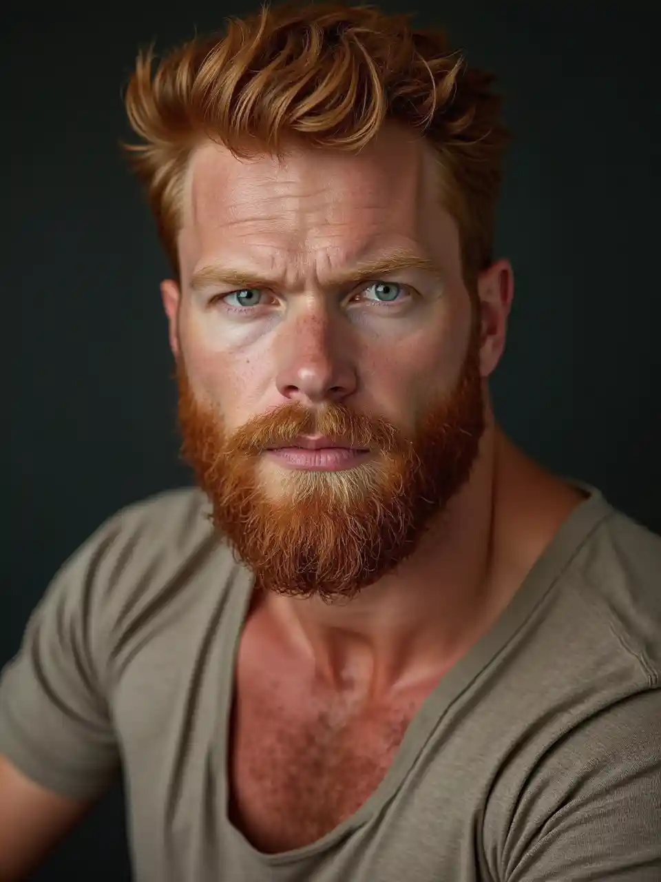 kiume na ndevu kiume na nywele za rangi ya zambarau na misuli kubwa na macho ya bluu