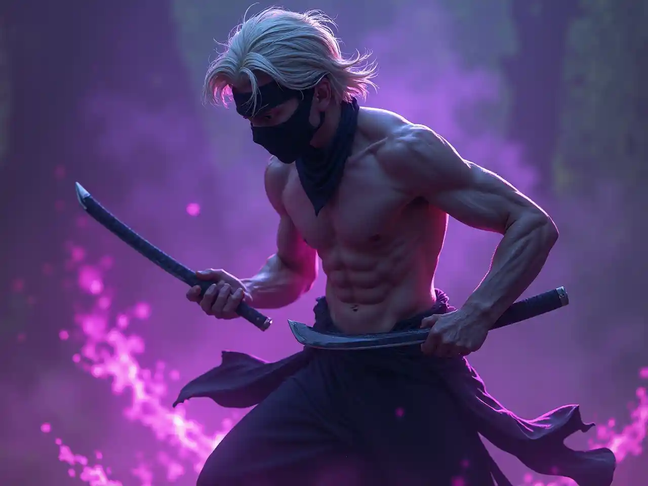 Mvulana Asiyejulikana na Katana na Moto wa Zambarau