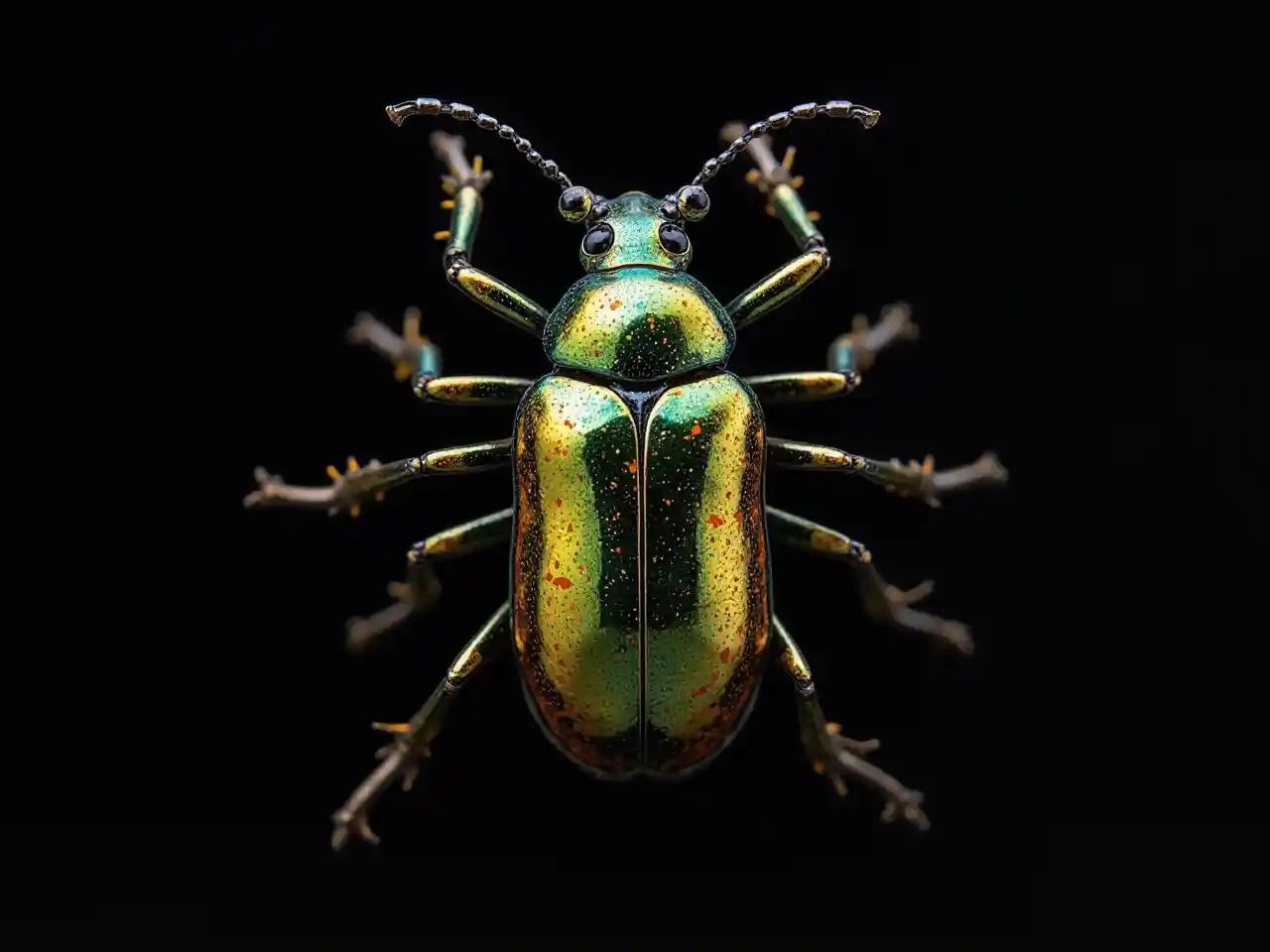 LandonBeetle nzuri, chuma, dhahabu na kijani na matangazo ya turquoise, background nyeusi, incredibly kina, mtazamo, hai, taa ya kusisimua