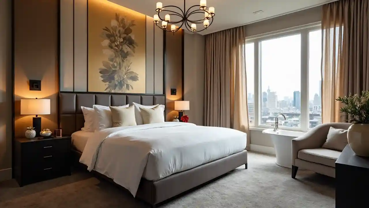 Chumba cha Kifahari cha Hoteli ya Kisasa na Maoni ya Jiji la New York