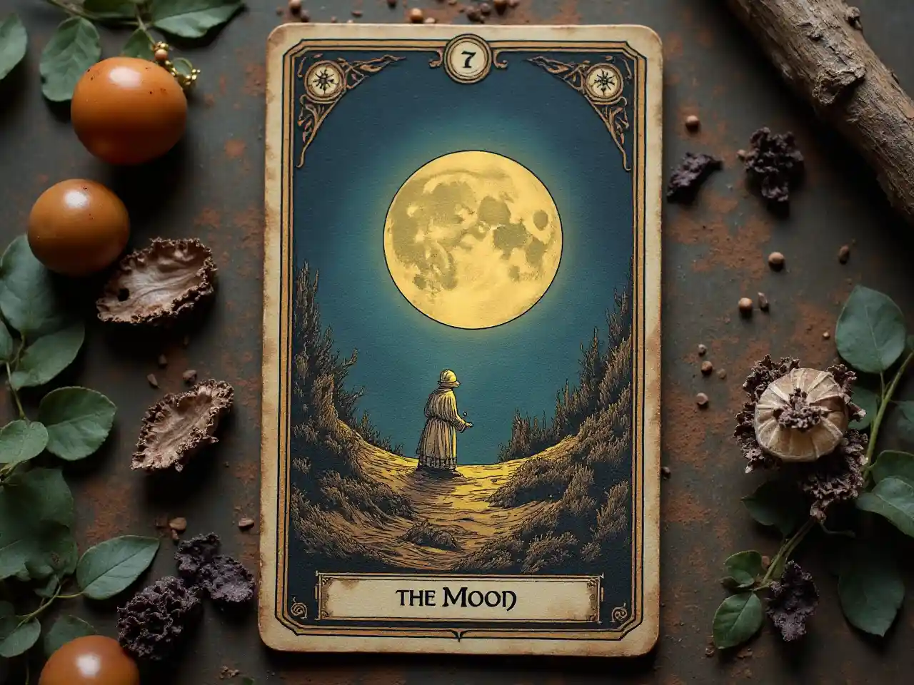 Kadi ya Tarot, "Mwezi", kijijini, fantasy, tarot ya jadi mpangilio