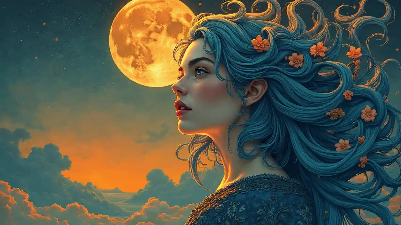1️ bango na mwanamke katika foreground na mwezi, katika mtindo wa Dan Mumford, mwanga bluu na amber, Alexander Avern, kijivu na shaba, rangi tajiri, karibu, rangi ya rangi ya kijani na azure --ar 2:3 2️ kazi ya sanaa inaonyesha mwanamke na nywele ndefu, katikati ya mwezi, katika mtindo wa mwanga teal na rangi ya machungwa, richly kina Art Nouveau, anga-blu na amber, mdogo rangi, bold atmosphere, emphasis on character design --ar 2:3 3️ mwezi juu ya msichana na nywele za bluu na anga ya bluu, katika mtindo wa rangi ya rangi ya kijani na shaba, sanaa ya kisasa, rangi ya kijani na rangi ya kijani, tajiri na ya kuvutia, vortexes, rangi kubwa --ar 2:3 4️ picha ya kuvutia ya mwanamke katika mtiririko wa nywele na background rangi ya machungwa, katika mtindo wa Dan Mumford, giza kijivu na azure, rangi ya anga, wahusika imaginative, sanaa poster, jiwe, mwanga azure na giza -ar 2:3