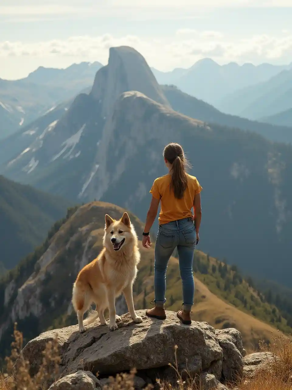 Msichana Kijana na Mbwa Wake Juu ya Mlima
