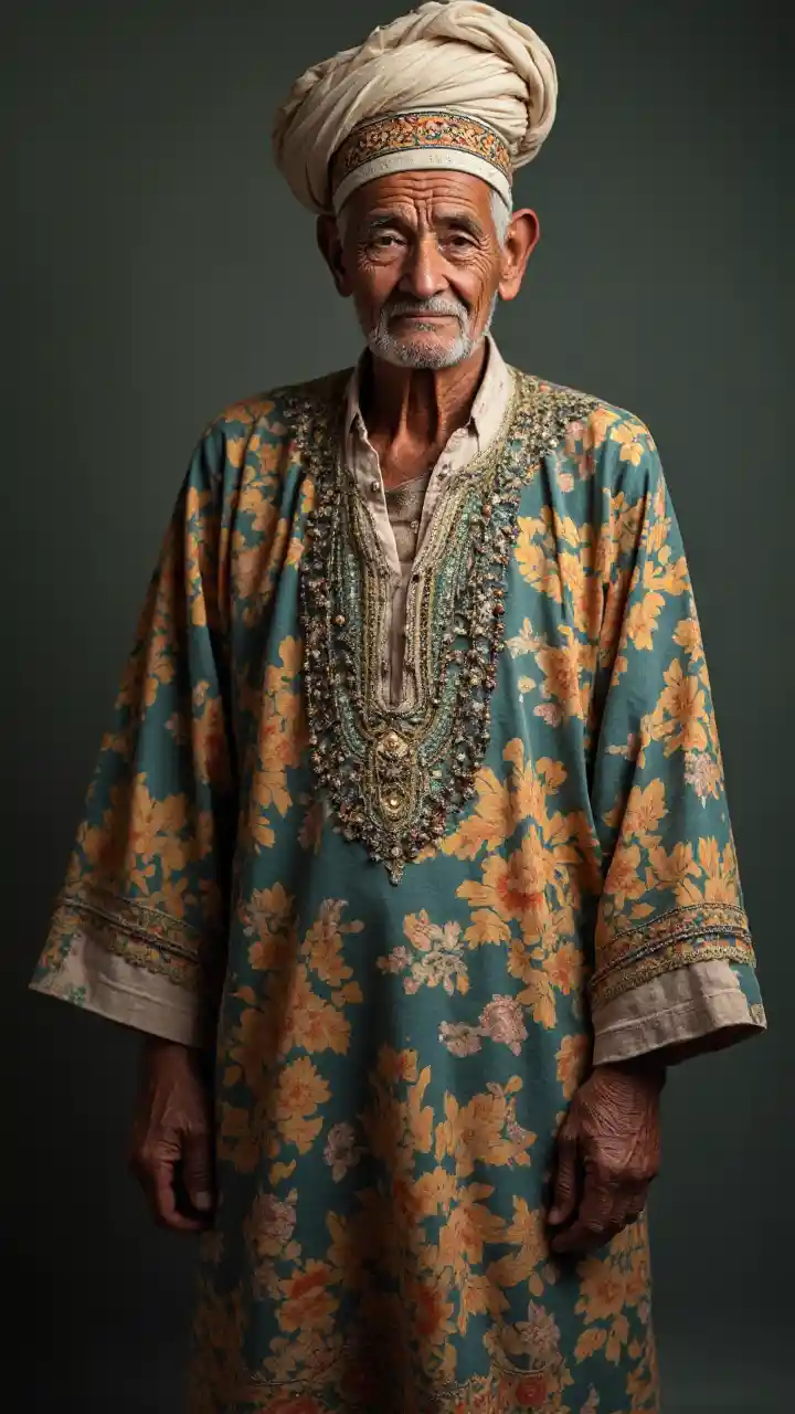 Mwanamume wa Kiislamu wa Miaka 75 Katika Batik na Cap