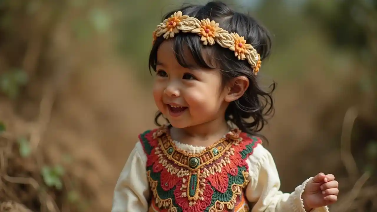 Msichana wa Asili wa Amerika wa Miaka 1 Katika Mavazi ya Kawaida