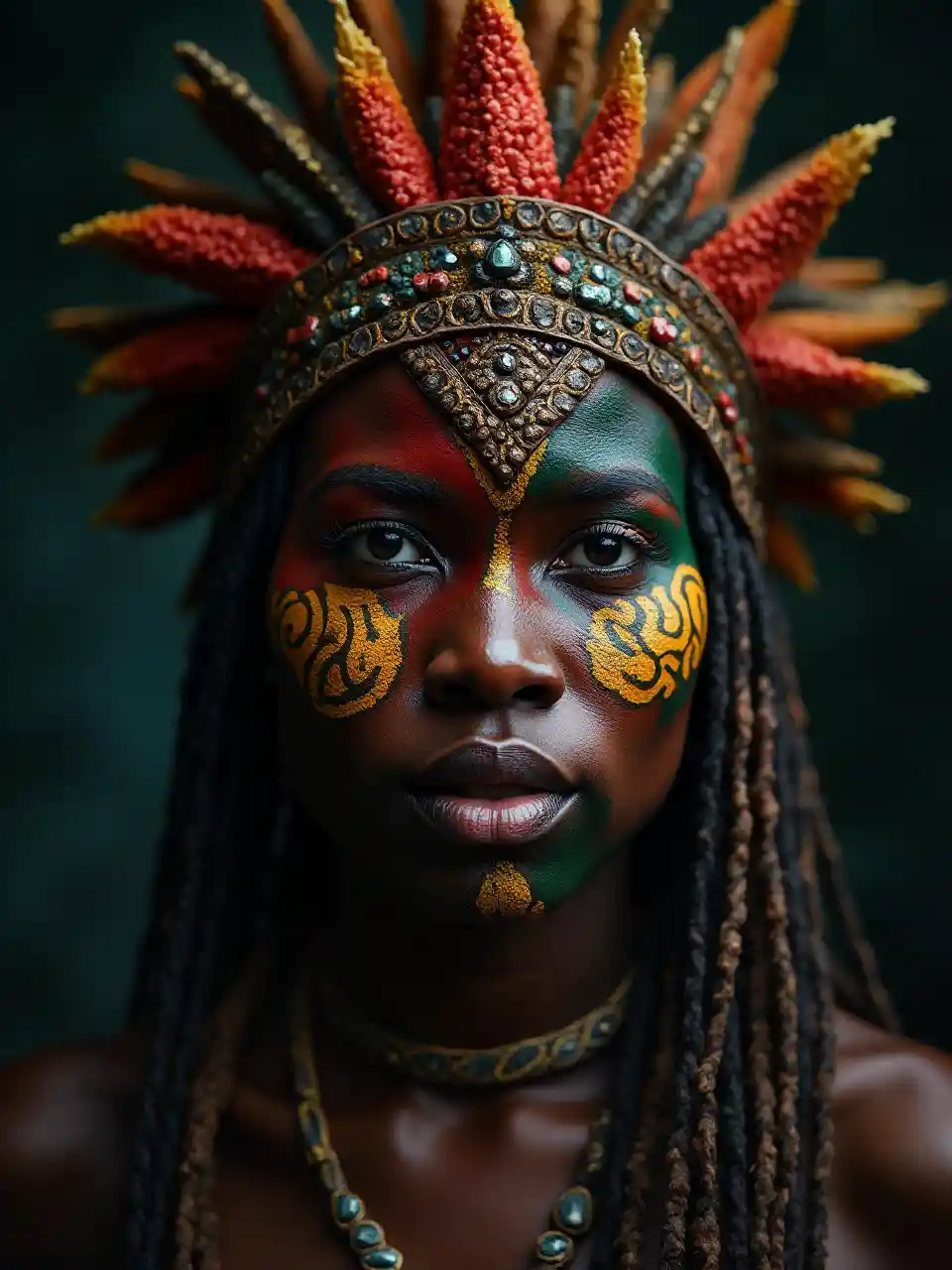 KittyPapua New Guinea asili mtu mwanamke amevaa kilemba, rangi ya uso, incredibly kina, hai mood lighting, karibu ya uso