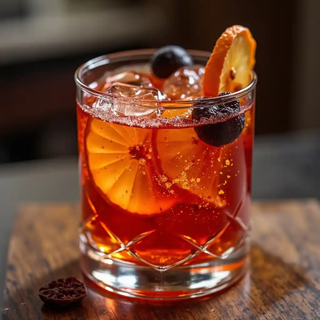 graceNegroni Cocktail na vipande vya matunda yaliyokaushwa