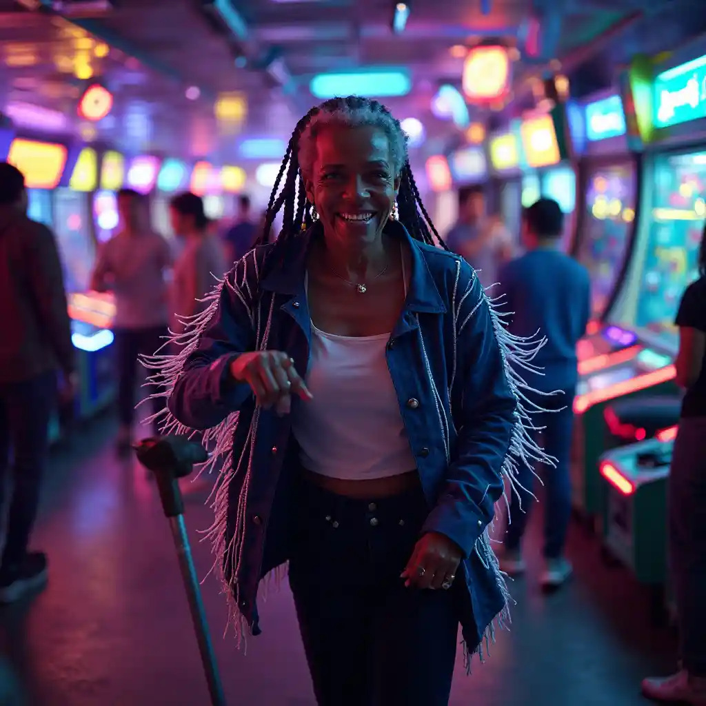 Neon Arcade Joy: Mwanamke Mzee Acheza Na Kijiti