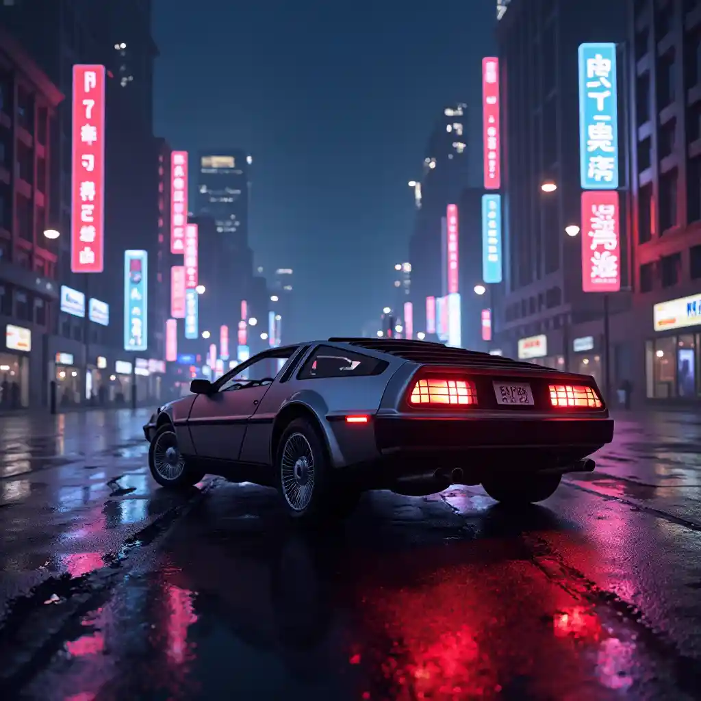 Safari ya Delorean Kupitia Jiji la Usiku Lenye Nuru Nyekundu