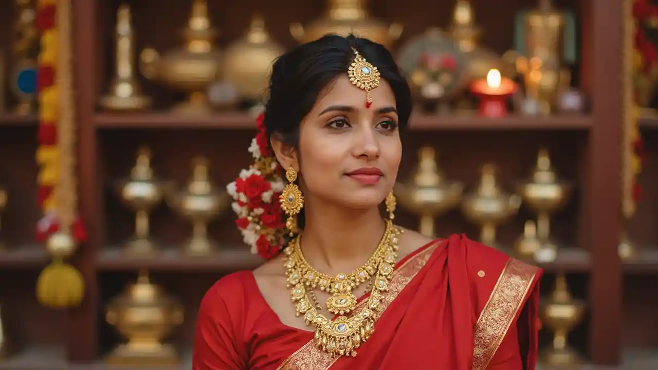 Bibi-arusi wa Nepal Avaa Sari Nyekundu na Mshipi wa Dhahabu
