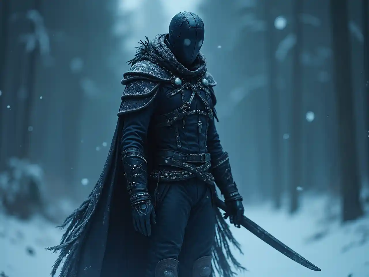 ElijahNight King, giza bluu theluji background, amevaa nguo za kisasa, hyper kweli, hyper kina kiume baada ya apocalyptic full mwili mavazi, male tabia,