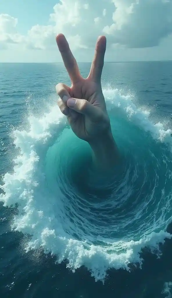 Mkono Mkubwa Kutoka Katika Dimbwi la Bahari Wafanya Ishara ya Amani