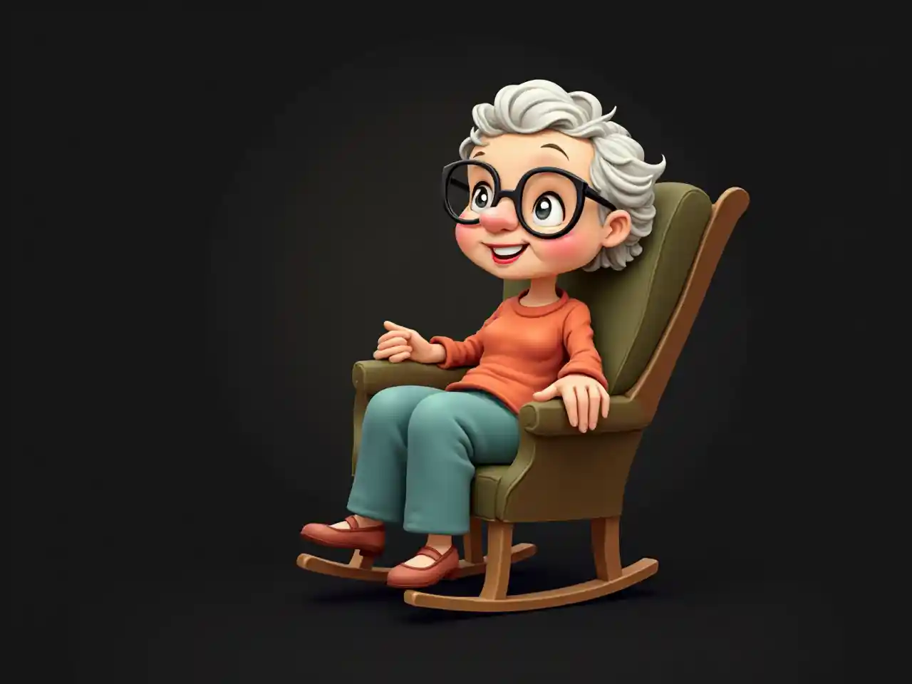 gracemwili mzima wanawake wakubwa tabia na miwani nyeusi, cartoon, kutengwa, background nyeusi ameketi katika kiti cha kutikisa