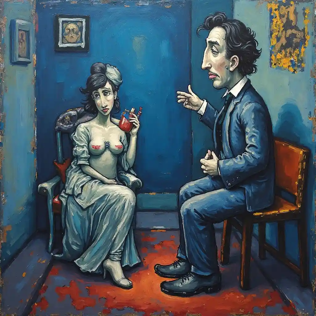 RileyFanya picha kama "Tragedy" kutoka kipindi cha bluu ya Picasso.