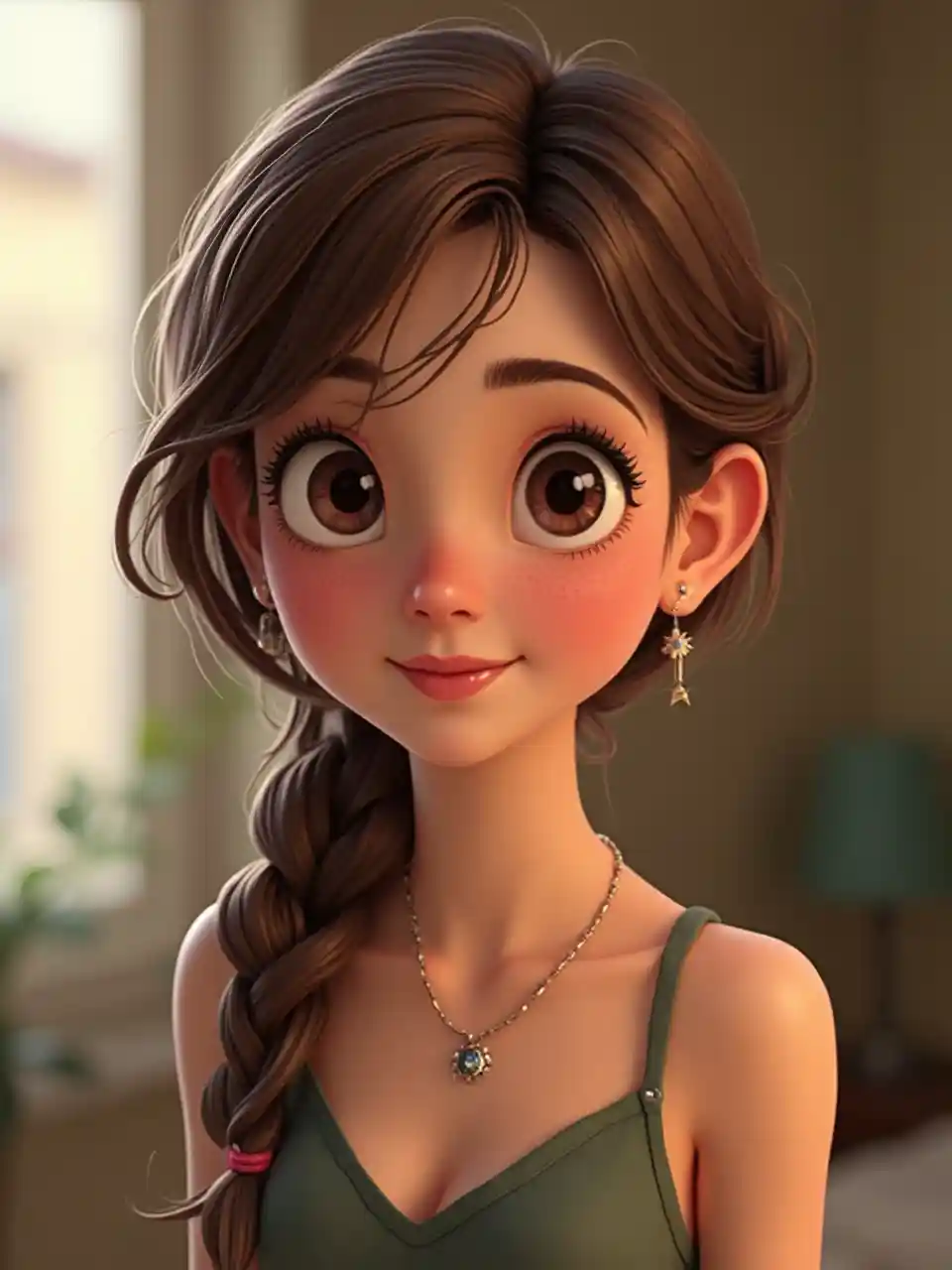 Ulaya msichana nyeupe na macho ya giza na nywele nyepesi, Disney Style