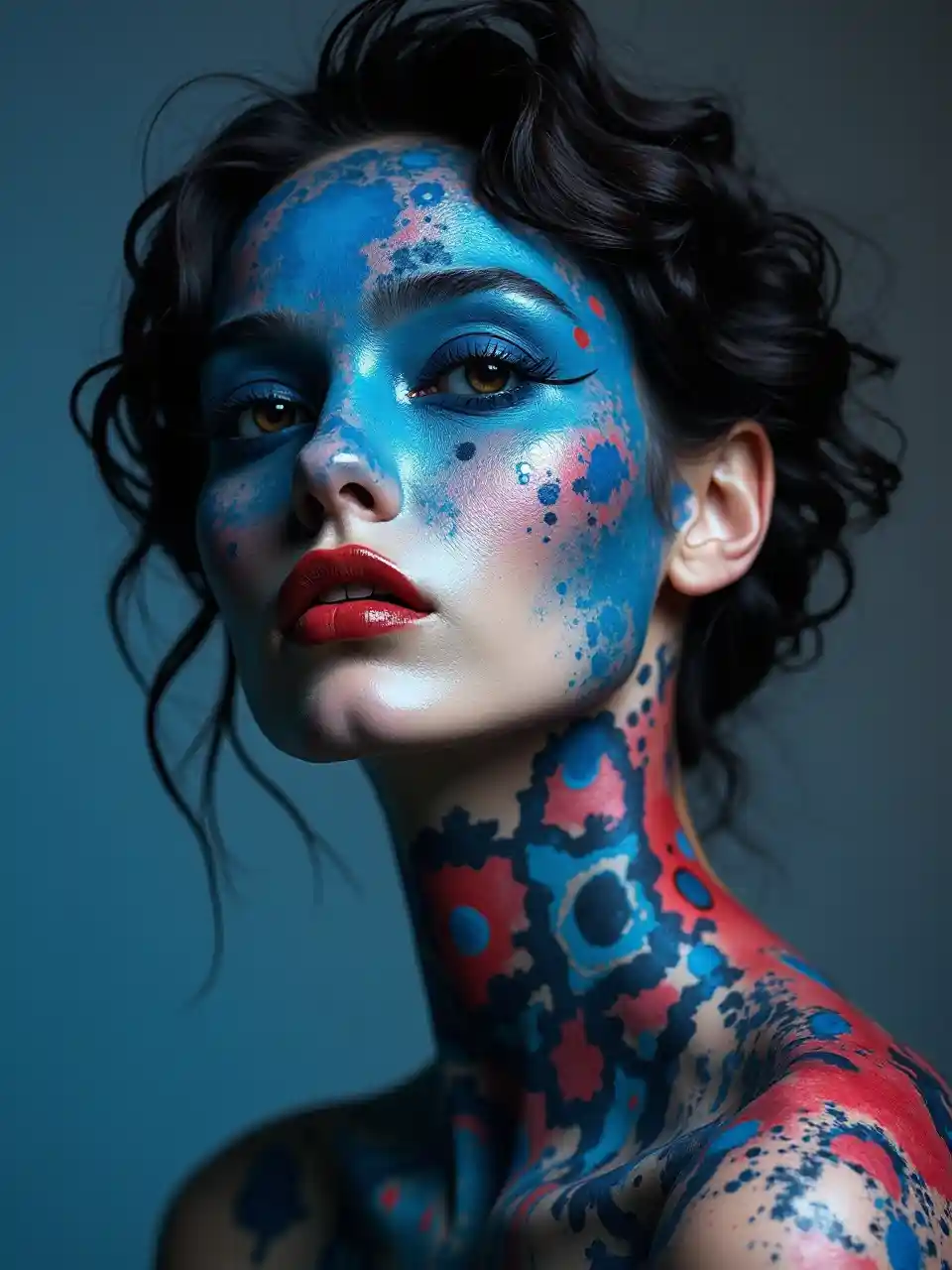mfano kuvaa vipodozi, katika mtindo wa pop-art, bluu na nyeusi, love, spray-penti msingi, upendo na romance, bold palette