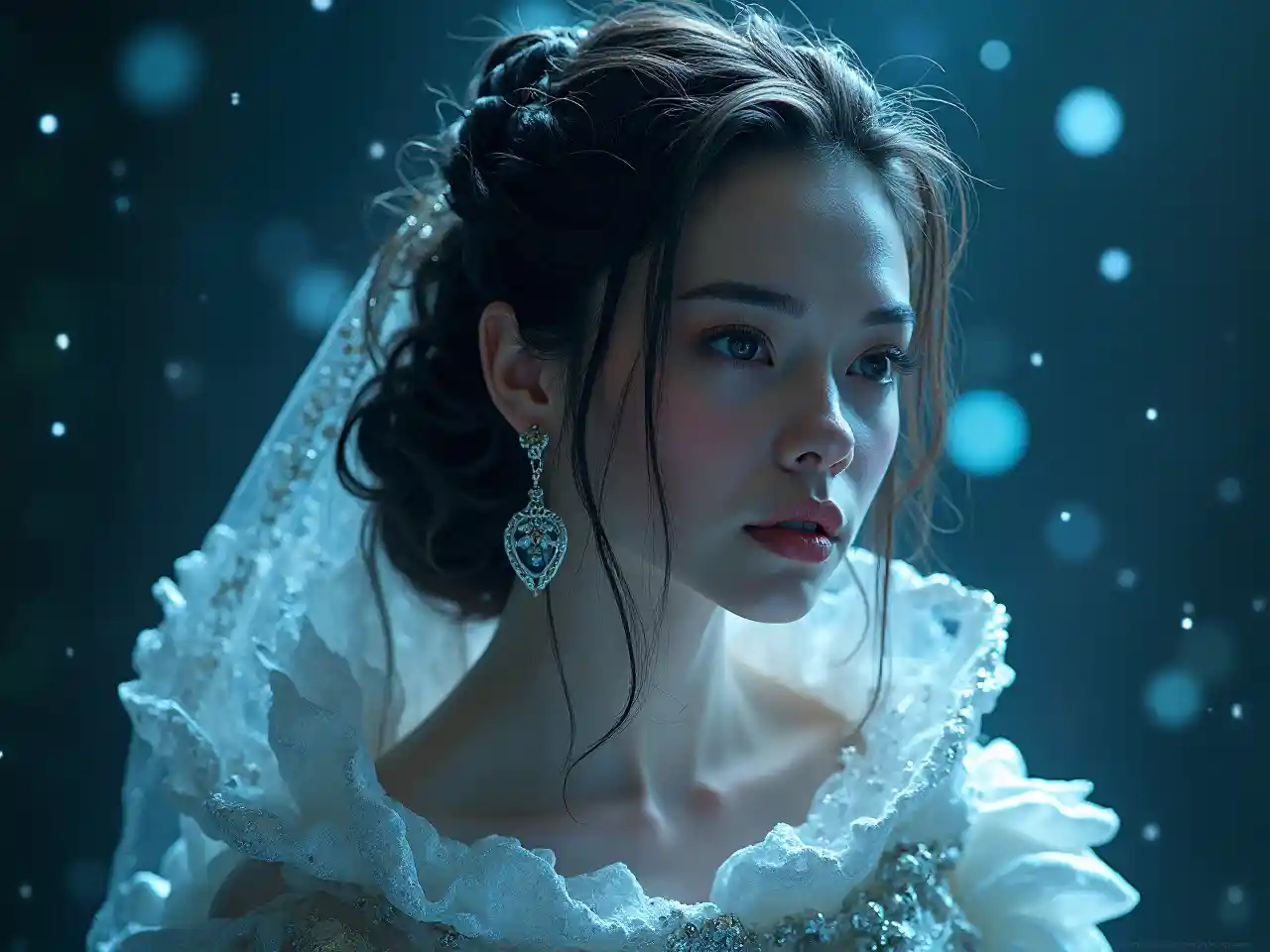 Masterpiece, ubora breathtaking, Princess Leia kufunikwa katika aura ya usiku ya ajabu na maelezo tata fedha, mwanga, giza fantasy aliongoza na Luis Royo, studio style, cyberpunk aesthetic, 8K azimio, UHD, HDR, anga ethereal, focus laini, bila mshono, picha wazi, bila vikengeusha, background bila doa, na kamili.